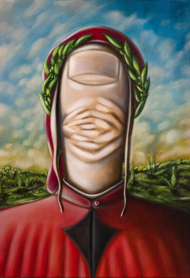 Sulla tela, il volto di Dante prende forma con una vivacità sorprendente. Ogni pennellata, realizzata con la punta del dito, sembra sussurrare un verso della Divina Commedia, un pensiero nato dalla mente del poeta. Gli occhi, rivolti verso un orizzonte lontano, riflettono la profondità della sua visione e la sua incessante ricerca della verità.