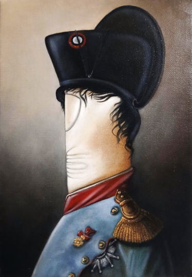 Sulla tela, il volto di Napoleone emerge con una sorprendente vitalità. Ogni delicato tocco del dito scolpisce i lineamenti del suo viso, rivelando un uomo tormentato dal potere e dalla gloria. Sebbene i suoi occhi non siano fisicamente rappresentati, la sua postura e la composizione complessiva trasmettono la sua ambizione e la sua sete di conquista, suggerendo un uomo di volontà ferrea.